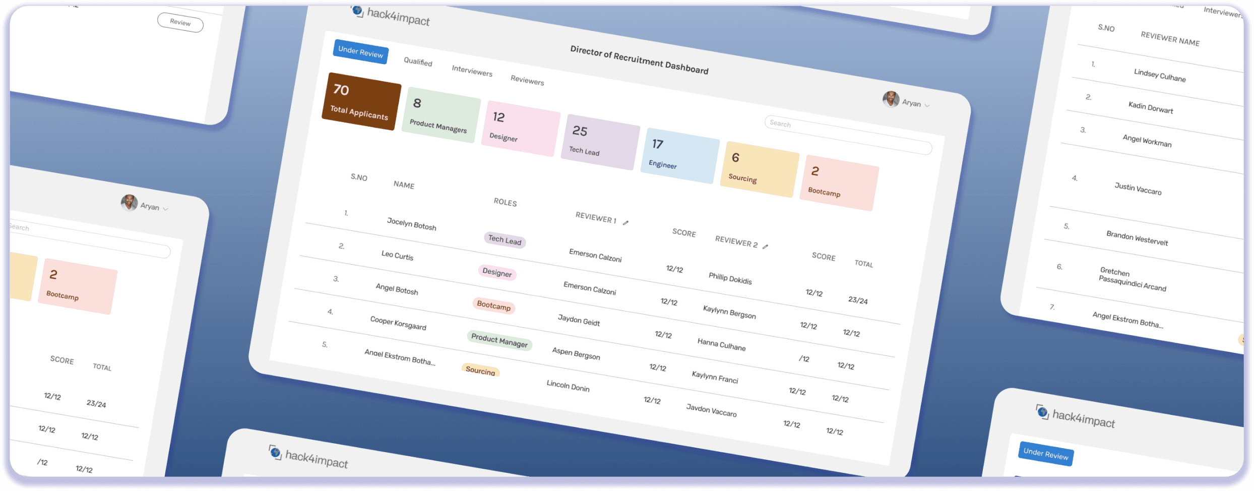 Led the redesign of Hack4Impact-UMD’s internal recruitment portal, reviewer dashboard and application form.